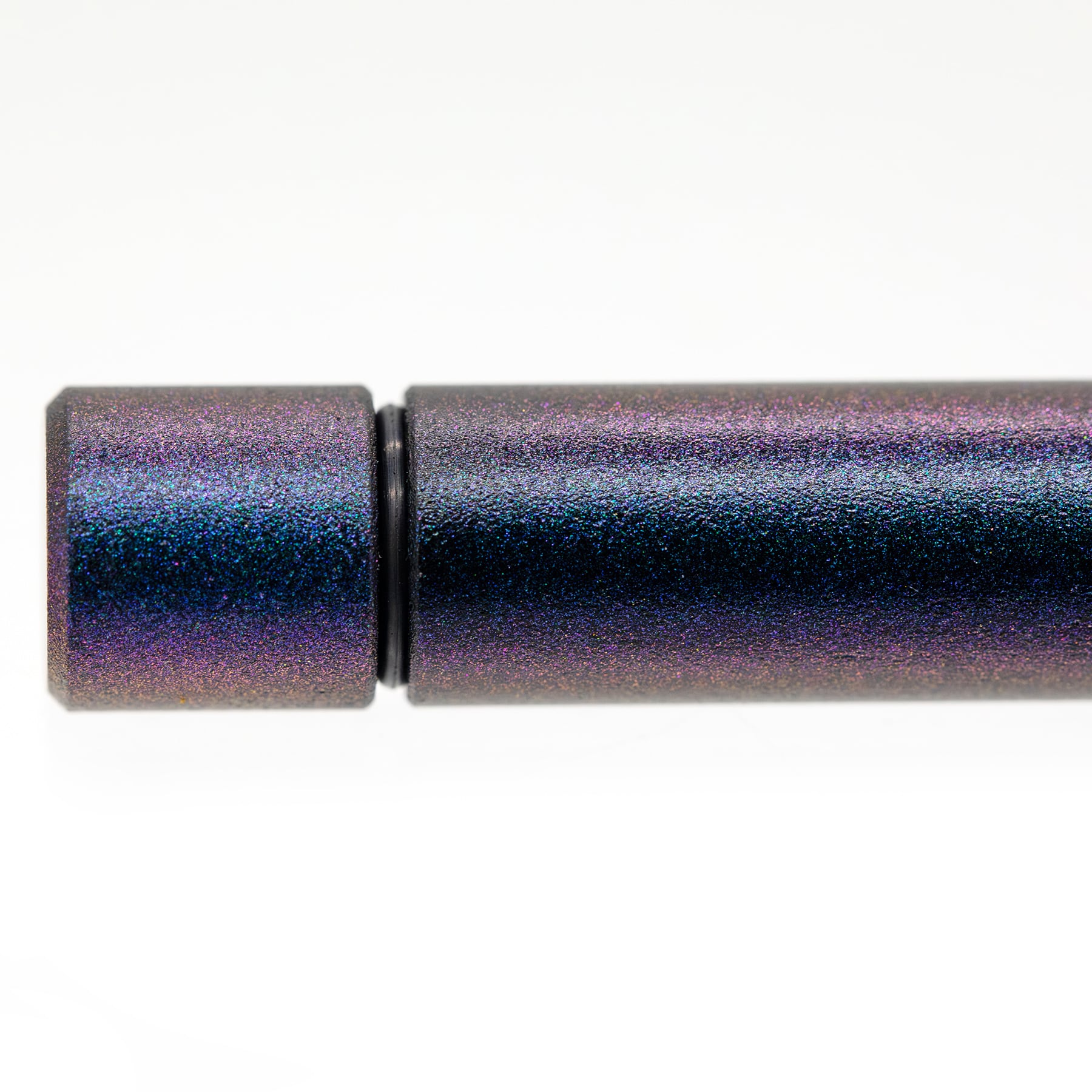 ブラスト加工を施した凹凸ボディは、見る角度や光の条件によってブルーからパープルに美しく鮮やかに偏光します