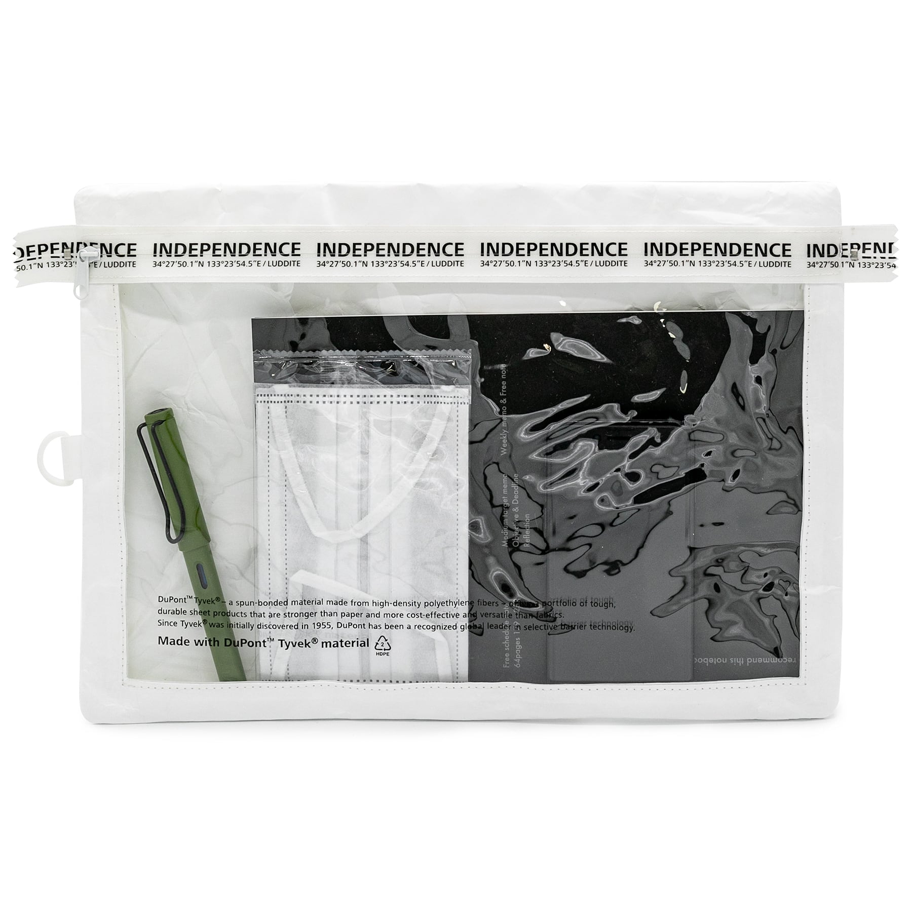 ラダイトは建築資材や衣料用減菌包材、防護服等に使われる、この特殊素材を日常的なステーショナリーINDEPENDENCEシリーズとして企画しました。